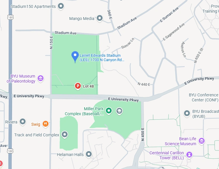 We recommend allowing for additional time before your event for parking and then walking to the venue. Provo traffic is typically busier around LaVell Edwards Stadium in during larger events.